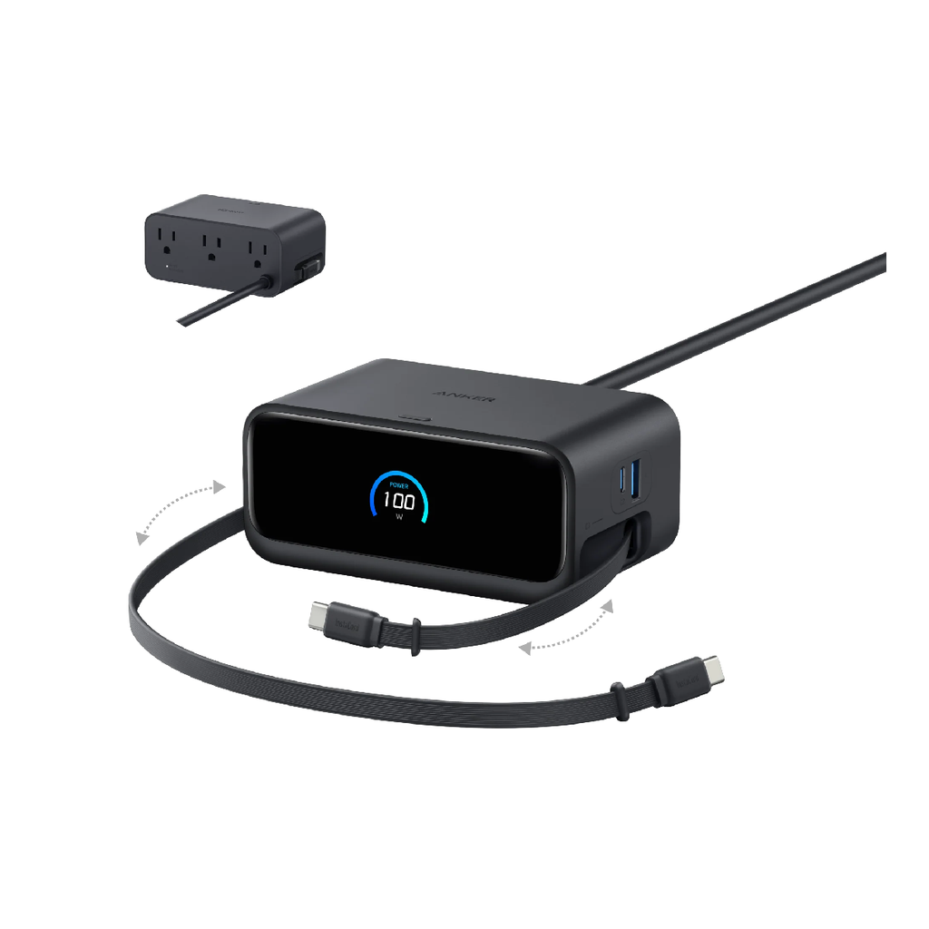 نظرة عامة على أنكر نانو محطة شحن 100 واط 6 في 1 مع كابل USB-C قابل للسحب - أبيض