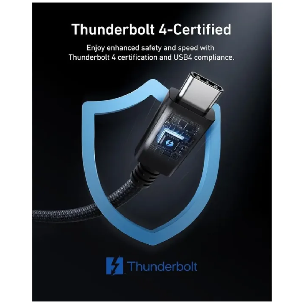 نظرة عامة على أنكر برايم ثندربولت كابل 4 بطول 3.3 قدم، بقدرة 240 واط، وسرعة نقل بيانات 40 جيجابت في الثانية - أسود