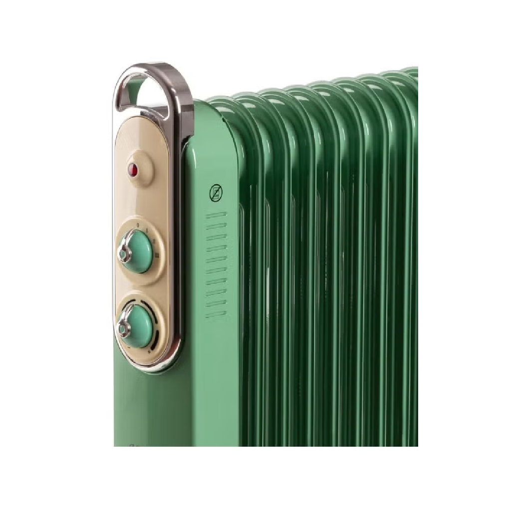 نظرة عامة على أرييتي مدفأة تعمل بالزيت، 11 عنصر، 2500 واط، 3 مستويات طاقة - أخضر/بيج