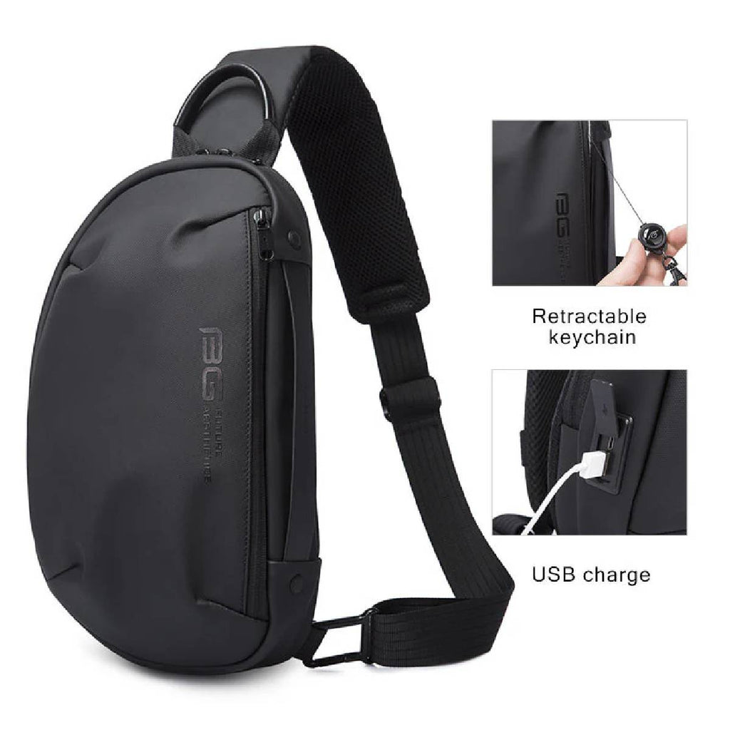 حقيبة حبال بانج 7306 متعددة الوظائف ومقاومة للماء مع شحن USB مضادة للسرقة للصدر - أسود المواصفات: