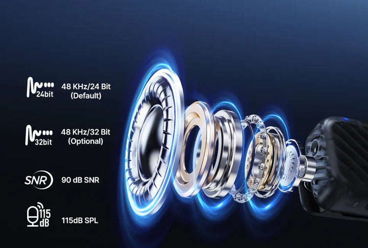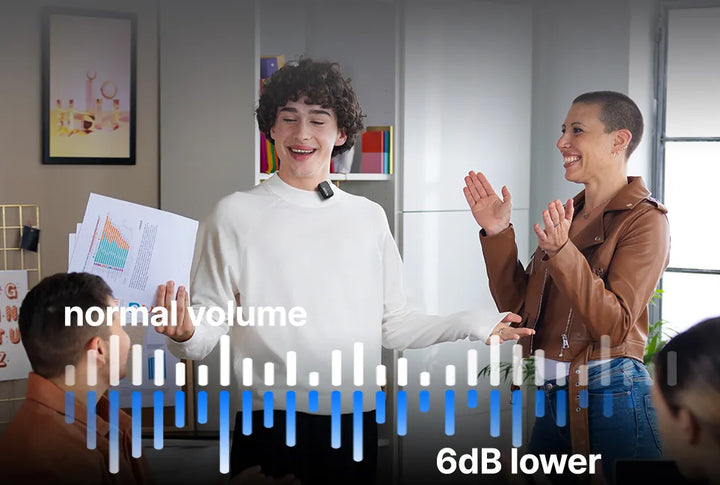 صوت بجودة الاستوديو: يدعم ميكروفون بويا ميك 2 2-02 اللاسلكي المزود بحلقة، صوتًا عالي الدقة بتردد 48 كيلوهرتز/24 بت (افتراضي) و48 كيلوهرتز/32 بت (اختياري)، مع نسبة إشارة إلى ضوضاء 90 ديسيبل، مما يضمن صوتًا نقيًا ودقيقًا. يتميز بمحدد صوت مدمج، ومسار أمان، وتضخيم تلقائي بـ 24 خطوة، مما يُسهّل التعامل مع الصراخ، وأصوات الجيتار الكهربائي، وغيرها من مصادر الصوت عالية الديناميكية، مع كتم فوري للأصوات المزعجة، وتسجيلات أكثر وضوحًا واحترافية.
