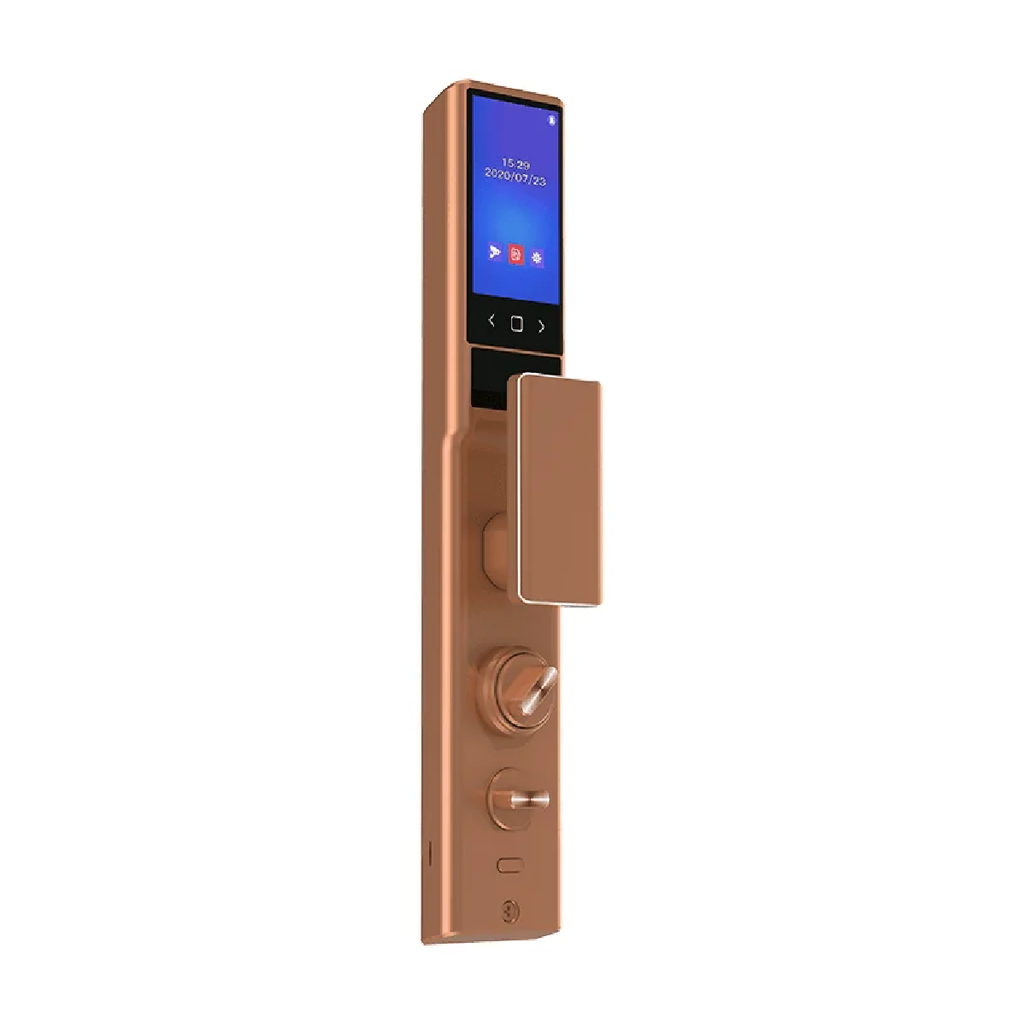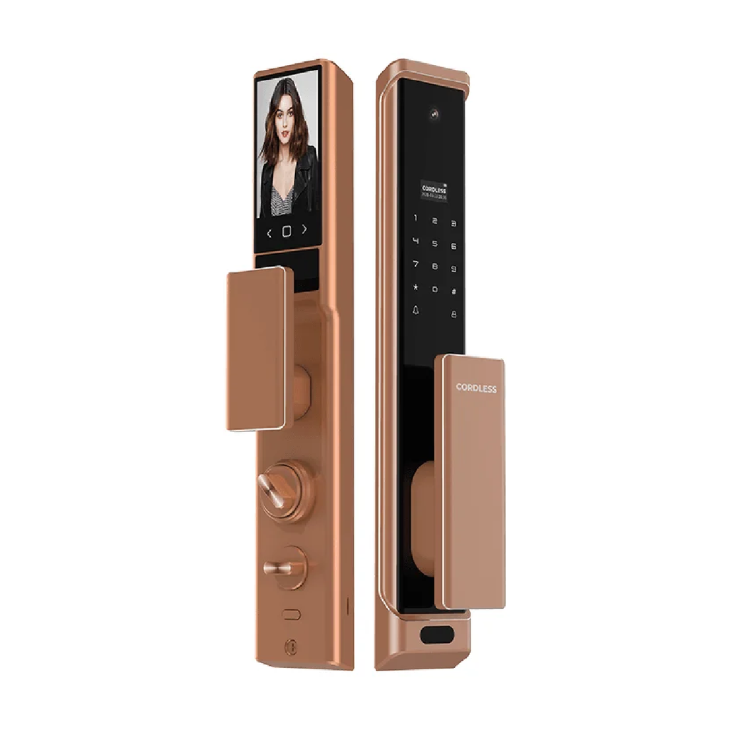| سمات | الوصول باستخدام رمز PIN دعم البطاقة المغناطيسية مفتاح ميكانيكي للاستخدام في حالات الطوارئ كاميرا خارجية عالية الدقة بدقة 2 ميجابكسل لالتقاط الصور والفيديو مكالمة فيديو ثنائية الاتجاه لرؤية الزوار وسماعهم والتحدث إليهم في الوقت الفعلي افتح الكاميرا في أي وقت من هاتفك لمراقبة النشاط المباشر عند الباب تأثيرات إضاءة جذابة عند التفاعل مع القفل شاشة خارجية منحنية أنيقة مدمجة بسلاسة في الجسم مناسب للأبواب الخشبية والمدرعة |