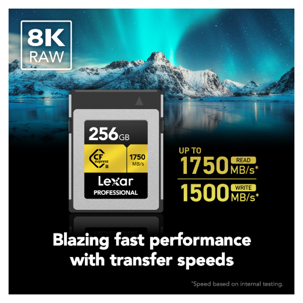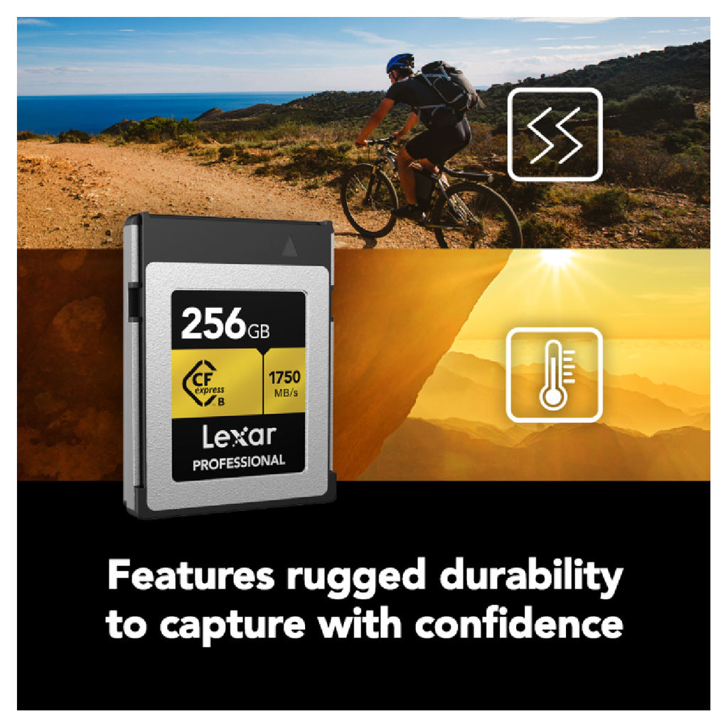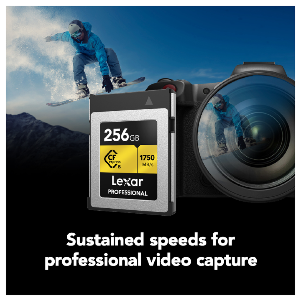 نظرة عامة على ليكسار بطاقة ذاكرة بسعة 256 جيجابايت الاحترافية CFexpress 2.0 من النوع B - ذهبي