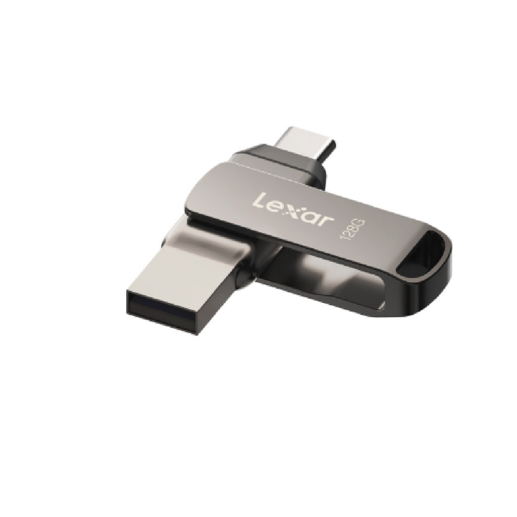 ليكسار ® جامب درايف ® محرك أقراص مزدوج D400 USB 3.2 من الجيل الأول من النوع C TM هو محرك أقراص فلاش 2 في 1 يسمح لك بنقل المحتوى بسلاسة بين منفذ USB Type-C TM الخاص بك وأجهزة Type-A. يتميز هذا القرص بهيكل معدني أنيق وتصميم دوار لمزيد من الحماية، وهو متين وسريع بسرعات نقل تصل إلى 130 ميجابايت/ ثانية .