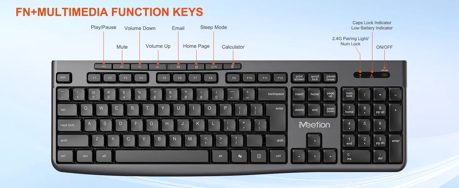 نظرة عامة على ميشن CW295 لوحة مفاتيح وماوس لاسلكية صامتة بتردد 2.4 جيجا هرتز - أسود