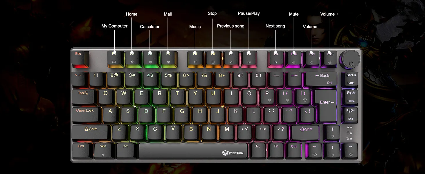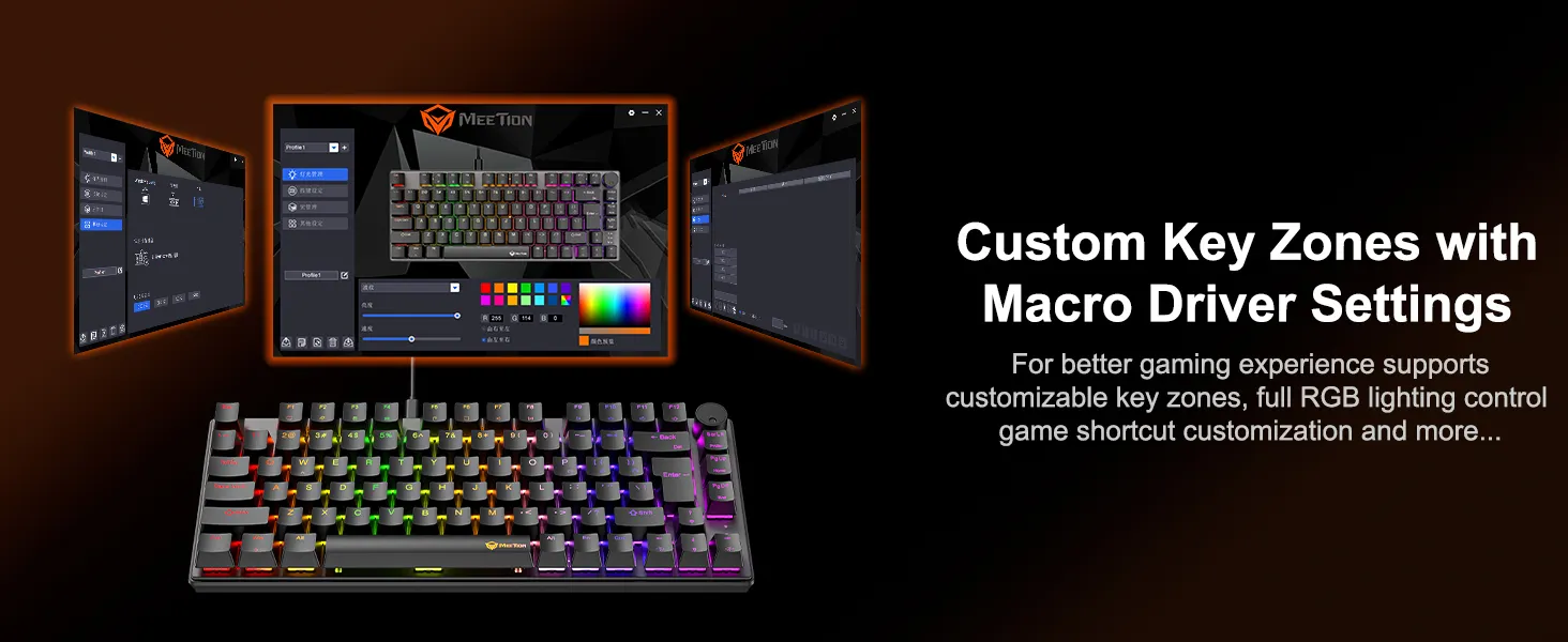 نظرة عامة على ميشن MK006 Pro لوحة مفاتيح ميكانيكية 75% RGB قابلة للتبديل السريع - أسود
