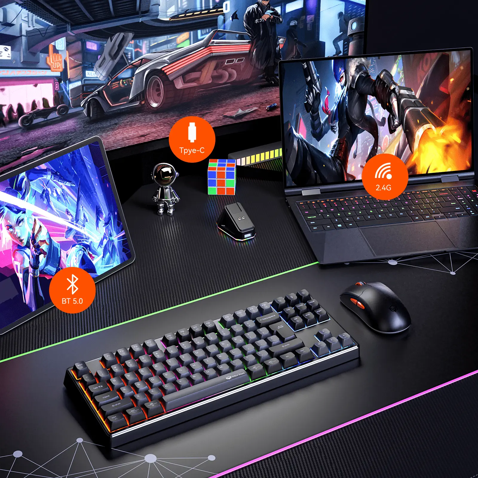 ميشن MK14 لوحة مفاتيح ميكانيكية لاسلكية ثلاثية الأوضاع RGB TKL - أسود المواصفات: