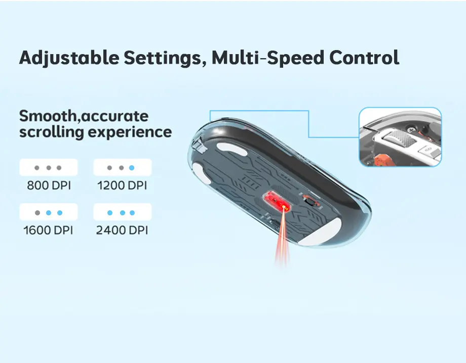 يتميز جهاز BTM005 بأزرار صامتة وتصميم محور صامت جديد، مما يضمن هدوء كل نقرة، وهو مثالي لبيئات العمل المكتبية التي تتطلب تركيزًا عاليًا. اعمل دون تشتيت بسبب الضوضاء. أنشئ مساحة عمل هادئة تُمكّنك من التركيز بشكل أفضل مع احترام بيئة عمل زملائك، مما يُحسّن الإنتاجية الإجمالية.