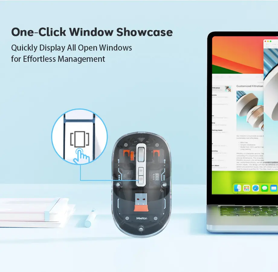 بفضل ميزة عرض النوافذ بنقرة واحدة، يتيح لك جهاز BTM005 عرض جميع النوافذ المفتوحة فورًا، مما يُسهّل إدارة مساحة عملك أكثر من أي وقت مضى. يمكنك الوصول بسرعة إلى ما تحتاجه دون عناء البحث بين علامات التبويب. تعمل هذه الوظيفة البديهية على تبسيط سير عملك من خلال توفير نظرة عامة واضحة على تطبيقاتك، مما يعزز الإنتاجية ويتيح تعدد المهام بسلاسة. أدر مهامك بسهولة وحافظ على تنظيمها بنقرة واحدة فقط.