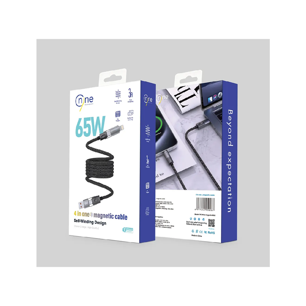 ناين 4 في 1 كابل مغناطيسي يو أس بي إلى لايتنج 1 متر - أسود المواصفات: