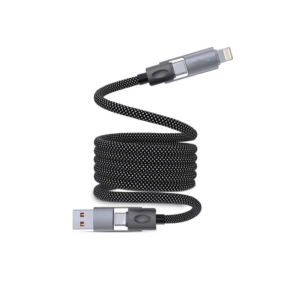 سمات | تصميم مغناطيسي 4 في 1 يسمح باستخدامات متعددة بكابل واحد يدعم الشحن السريع حتى 65 وات لأجهزة متعددة أداء ثابت لنقل البيانات بسرعة عالية جديلة الدنيم القوية المقاومة للتشابك والانحناء توافق واسع مع الهواتف الذكية والأجهزة اللوحية وأجهزة الكمبيوتر المحمولة سهولة تغيير الأطراف بفضل التصميم المغناطيسي |