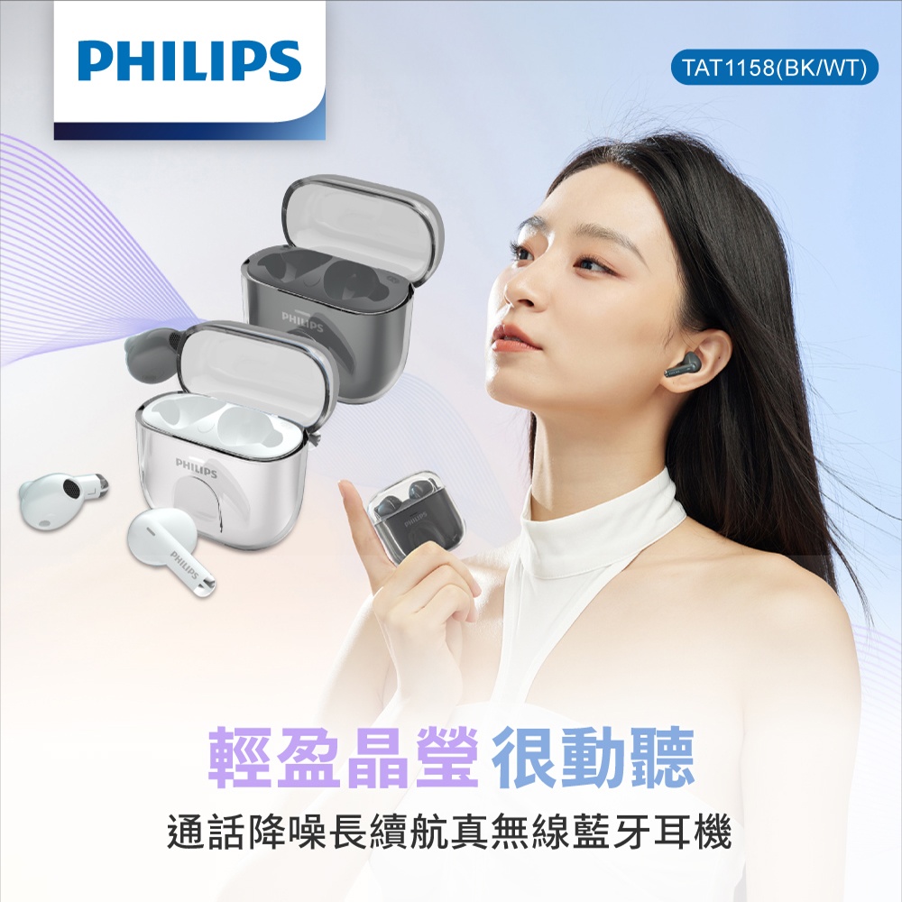 فيليبس TAT1158 سماعات رأس لاسلكية حقيقية السلسله 1000 - أسود المواصفات: