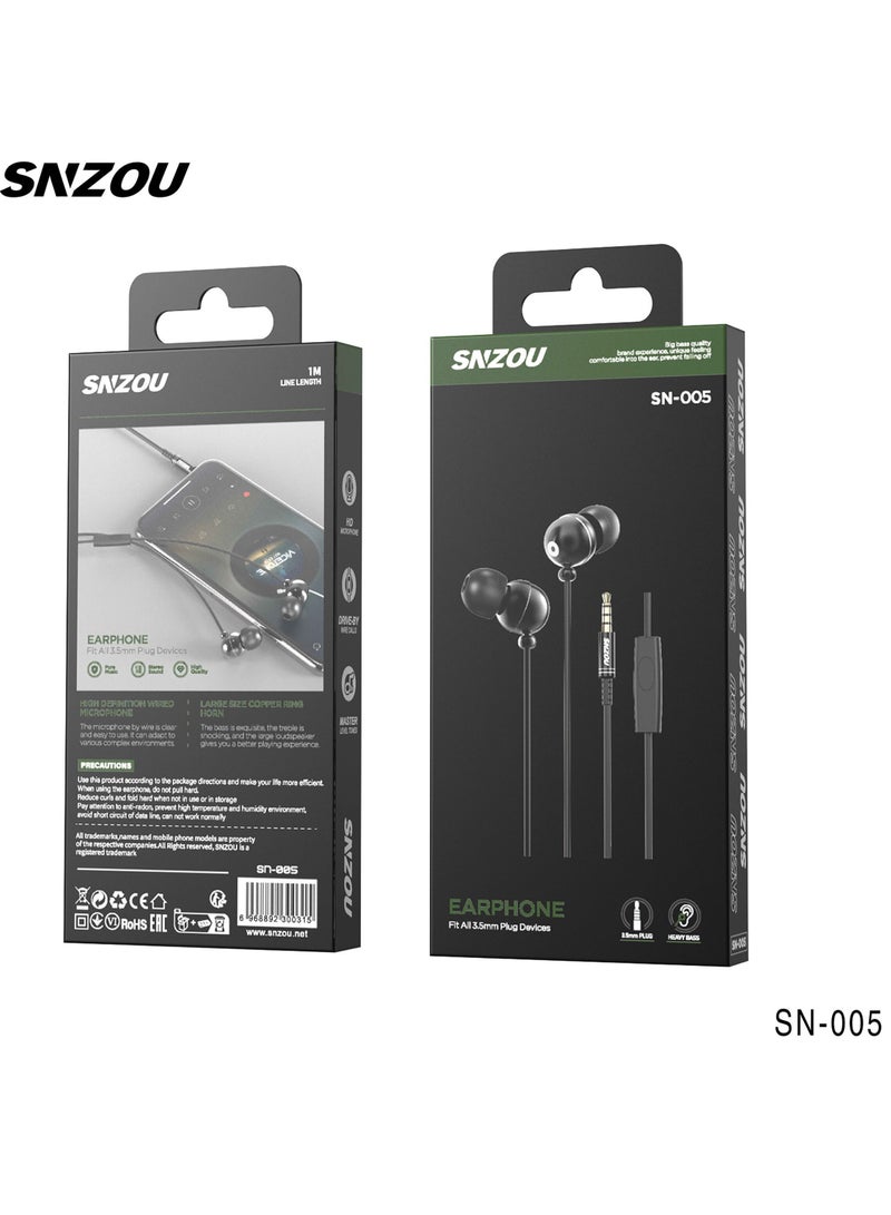 سينزو SN-005 ديب باس سماعات أذن سلكية مزودة بميكروفون مقاس 3.5 مم - أسود المواصفات: