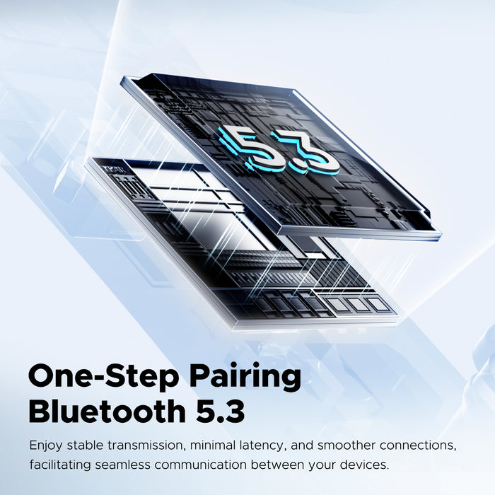 بلوتوث 5.3 وإقران بخطوة واحدة. تتميز هذه السماعات بتقنية بلوتوث 5.3، مما يوفر اتصالات سريعة وموثوقة لتجربة صوتية سلسة وفورية، سواءً في العمل أو الصالة الرياضية أو أثناء اللعب. ما عليك سوى إخراج السماعات من علبة الشحن واختيار "Sound PEATS Clear" في إعدادات البلوتوث بجهازك.