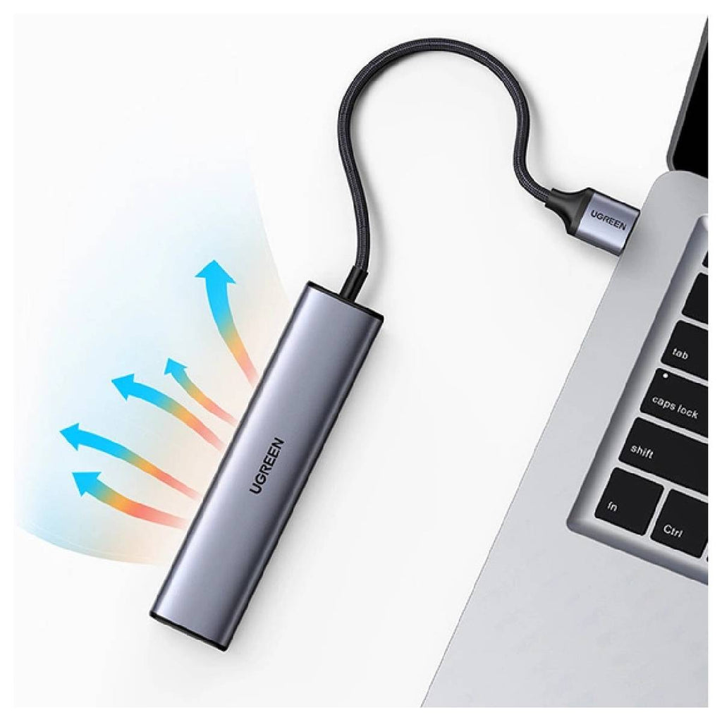 نظرة عامةعلى محول يوجرين CM475 USB-C إلى 3 منافذ USB 3.0 + منفذ RJ45 إيثرنت بسرعة 1000 ميجابت في الثانية - رمادي