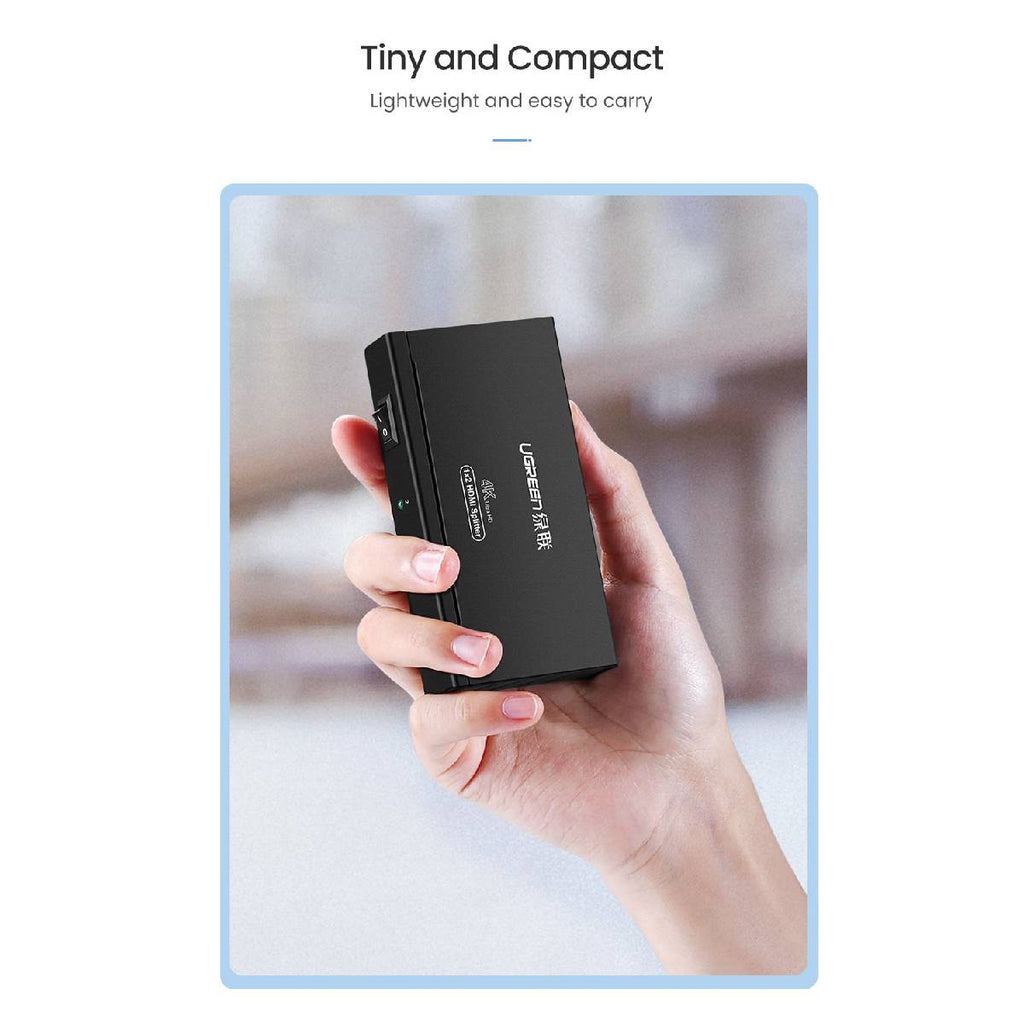 يقوم موزع HDMI من UGREEN طراز CM619 (40201EU) بتكرار إشارة HDMI واحدة على شاشتين في وقت واحد. صُمم هذا الموزع خصيصًا للمسارح المنزلية، والفصول الدراسية، وأجهزة الألعاب، واللافتات الرقمية، حيث يوفر محتوى فائق الوضوح بدقة 4K بمعدل 30 هرتز ومحتوى عالي الدقة بالكامل 1080p بمعدل 60 هرتز، مما يضمن صورًا فائقة الوضوح وصوتًا متزامنًا.