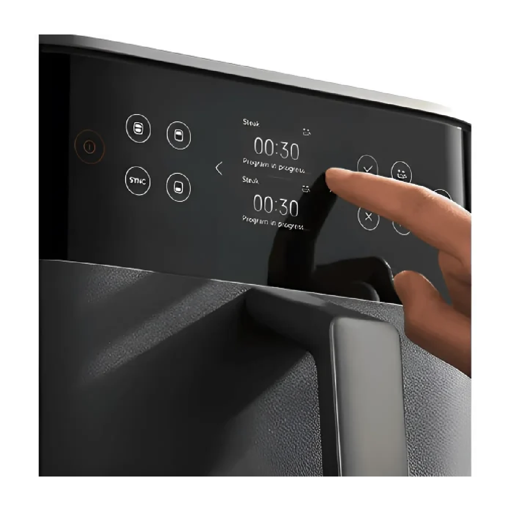 يمكنك الاطلاع على حالة الطهي بنظرة سريعة. تتيح لك شاشة LCD الملونة التفاعلية التحكم في السلتين العلوية والسفلية بشكل مستقل، مما يسهل مراقبة كلتيهما.