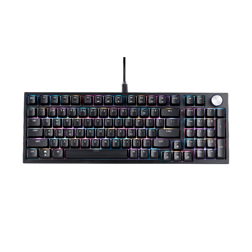 لوحة مفاتيح الألعاب إكس بي جي سكورسر، التي تتميز بعامل شكل 96%، تجمع بسلاسة بين الصغر والتنوع. صُممت بتصميم حشوة، ورغوة تخميد ثلاثية الطبقات، ومفاتيح قابلة للتبديل السريع، لتقدم تجربة كتابة لا مثيل لها. بفضل تقنية أكس بي جي ريد سويتش ، المزودة بجذع POM سلس، تضمن سكورسر سلاسة استثنائية في ضغط المفاتيح. بالإضافة إلى ذلك، تُتيح إضاءة RGB لكل مفتاح، المُدارة بواسطة برنامج المميز سهل الاستخدام، للمستخدمين إمكانيات تخصيص لا حصر لها.