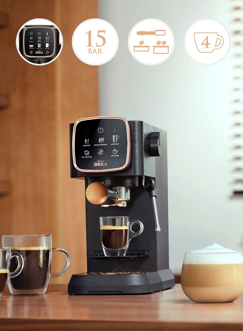 Arzum Okka Solo Digital Semi Automatic Espresso Coffee Machine With Pump, 1628W - Black Spec: