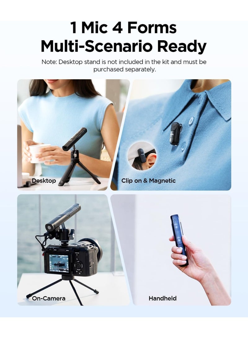| 4 Forms in 1 | Clip on Lavalier Mic, Handheld Mic, Desktop mic, or on-Camera Mic |