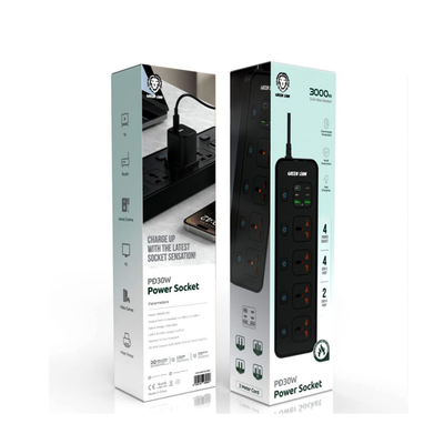 Green Lion PD 30W 4 Power Socket, 4 USB-A, 2 USB-C - Black Spec: