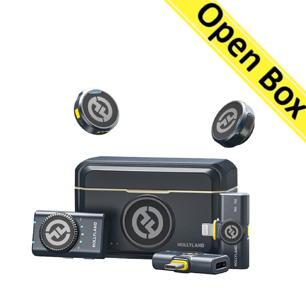 ord up to two people in mobile journalism or content creation applications using this shine charcoal, 2.4 GHz LARK M2 DUO Wireless Combo Microphone System from Hollyland. The system includes two transmitters with built-in omnidirectional microphones and dual-interface mesh, three different receivers, and a charging case. Magnetic back clips and silicone necklace cases make attaching your transmitters to your talent a breeze. Various adapter cables and an integrated camera shoe mount ensure wide device compatibility.