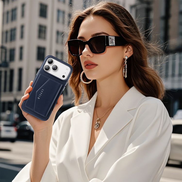 The Levelo Vertex Wallet Case made of PU leather is the perfect blend of protection, elegance, and functionality for your iPhone 17 Pro in an elegant dark blue color.
