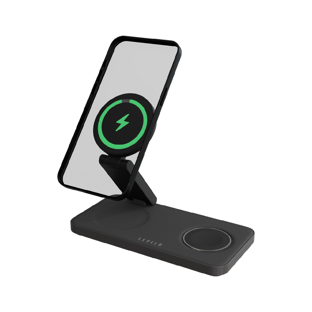 It has the advantages of strong N52 magnets, ensuring that the placement of your devices remains steady and secure; a foldable design that makes it easy to carry and store; and an LED indicator tells you the charging status. It features over-temperature as well as over-voltage protection, thus securing your devices. Fast charging or multi-device charging, the Levelo Quantum 3-in-1 Wireless Charger is your dependable and efficient way.
