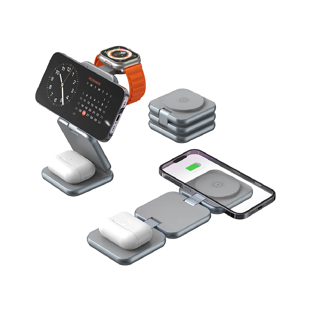 Overview For Nine 3-in-1 Foldable Wireless Charger 15W - Gery