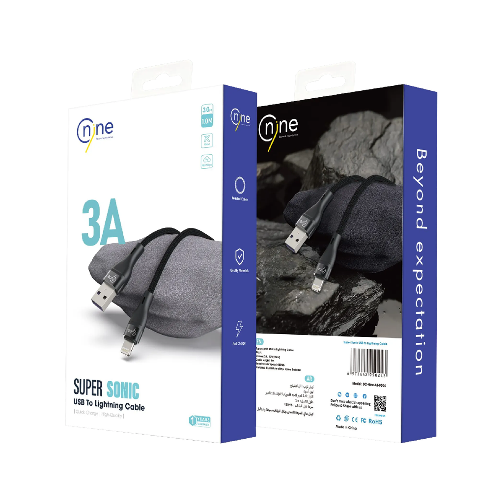 Nine Super Sonic Fast Charging Cable 12W, 1M, USB to Lightning - Black Spec: