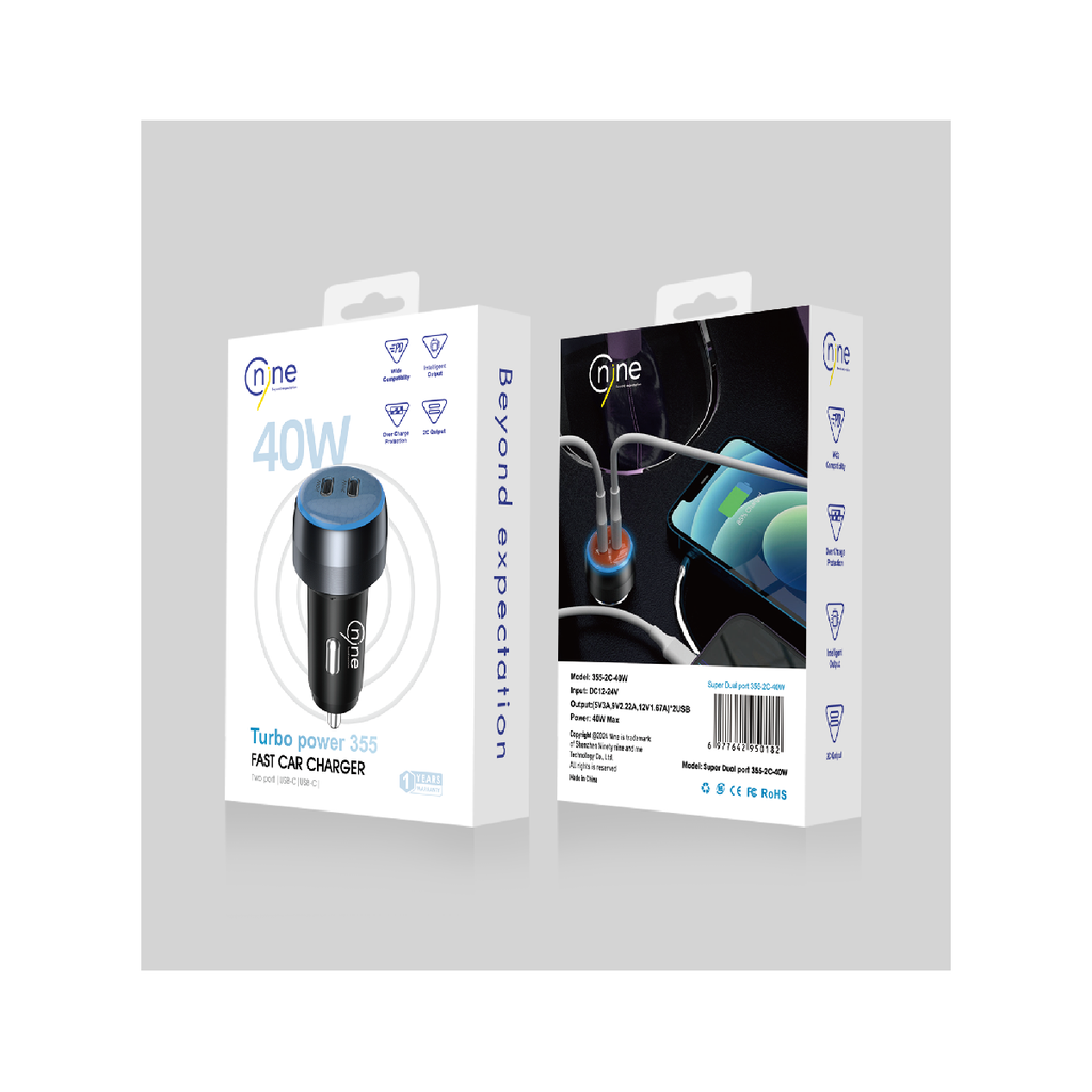Nine Turbo Power 355 Fast Car Charger 40W - Black Spec:
