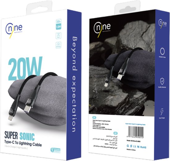 Nine SUPER SONIC Type-C To Lightning Cable 20W - Black Spec: