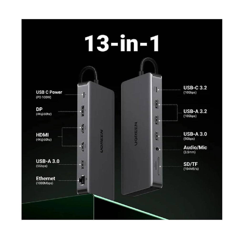 The UGREEN 13-in-1 USB-C Multifunction Hub (CM681 – 15978) is a powerful all-in-one connectivity solution designed to transform a single USB-C port into a comprehensive workstation. With support for multiple displays, ultra-fast data transfer, charging, and networking, this hub is ideal for professionals, creators, and multitaskers who demand high performance and versatility from their devices.