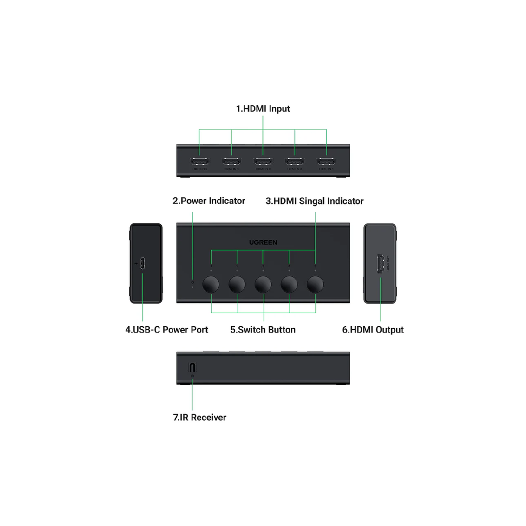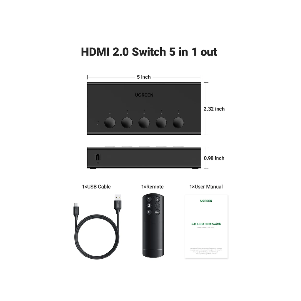 Ugreen HDMI Switch 5 in1 Out - Black Spec:
